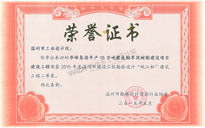 華峰集團年產(chǎn)15萬噸聚氨酯革用樹脂建設項目建設工程 甌江杯二等獎