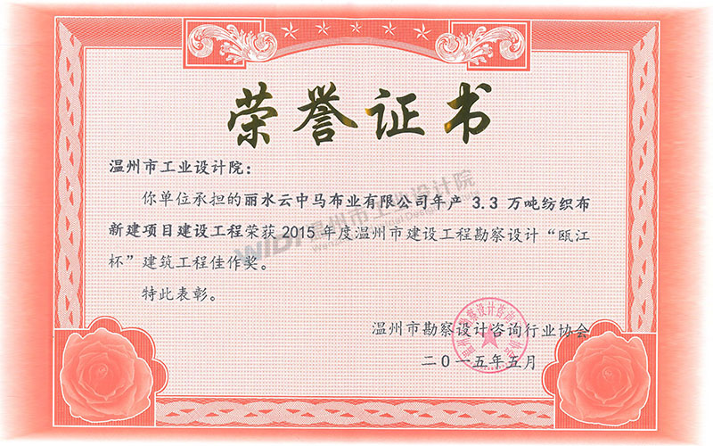 麗水云中馬布業(yè)有限公司年產(chǎn)3.3萬噸紡織布新建項目建設工程 甌江杯建筑工程佳作獎