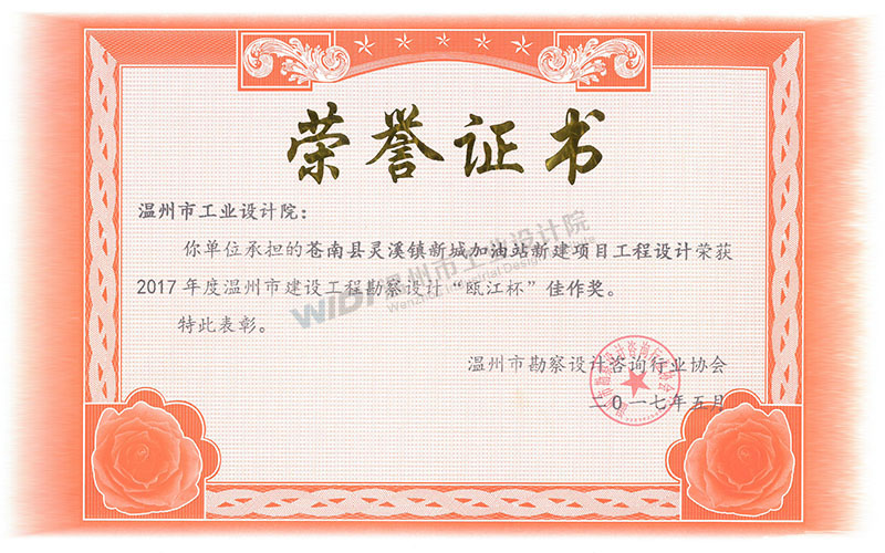 蒼南縣靈溪鎮(zhèn)新城加油站新建項目工程設計 甌江杯佳作獎