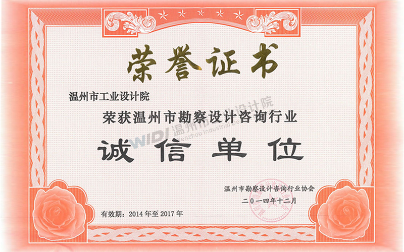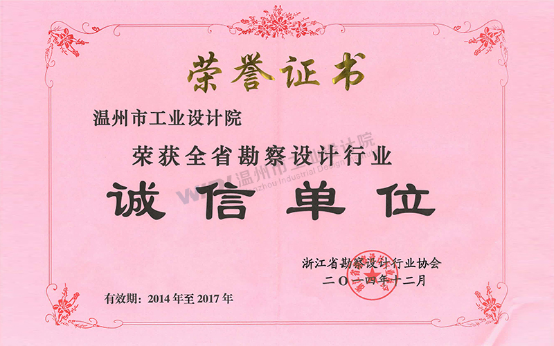 溫州市勘察設(shè)計(jì)行業(yè)誠(chéng)信單位證書(shū)2024-2026