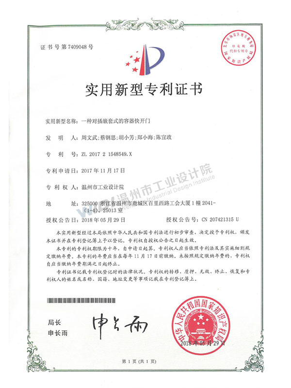 實(shí)用新型專利證書1