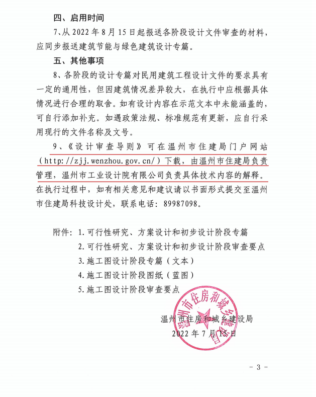 2022年7月15日,溫州市住房和城鄉(xiāng)建設(shè)局印發(fā)由工業(yè)院負(fù)責(zé)編制的《溫州市民用建筑節(jié)能與綠色建筑設(shè)計(jì)審查導(dǎo)則》,并將從8月15日起施行,標(biāo)志著溫州市綠色建筑設(shè)計(jì)進(jìn)入新的階段。